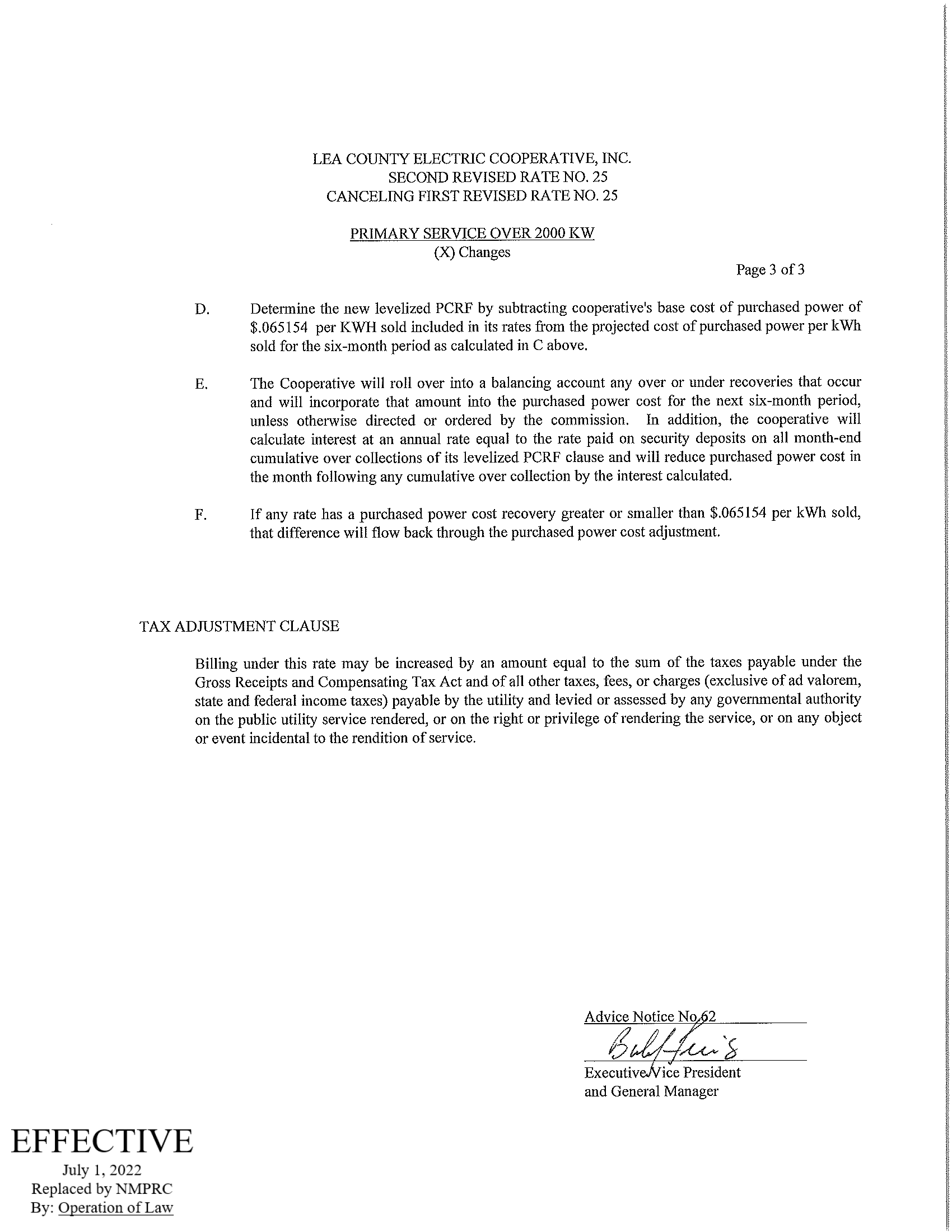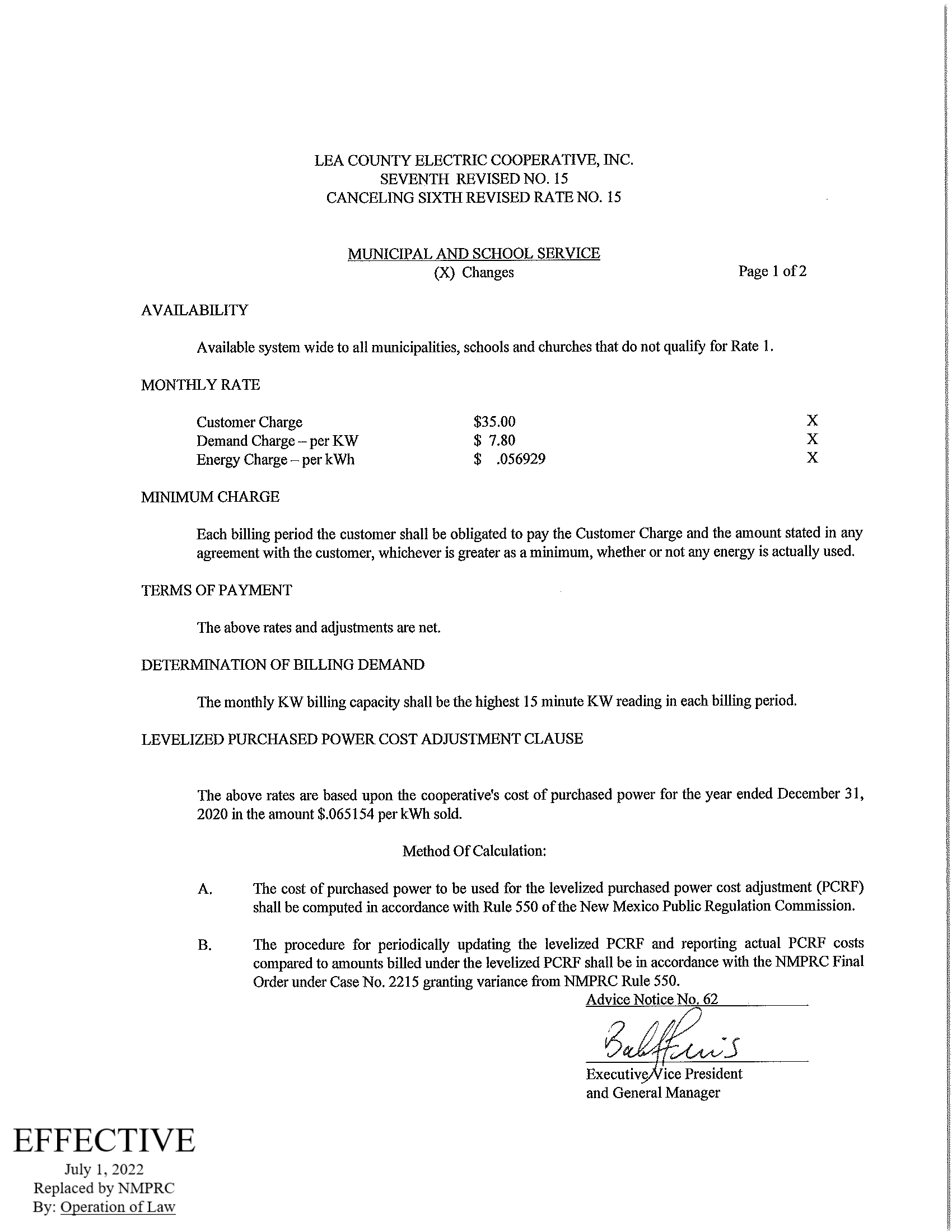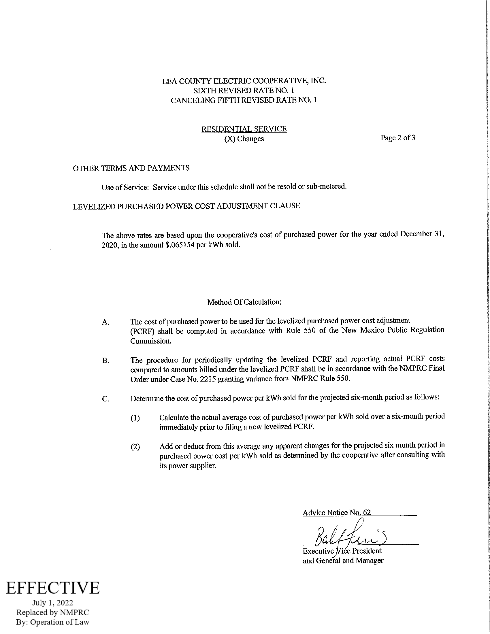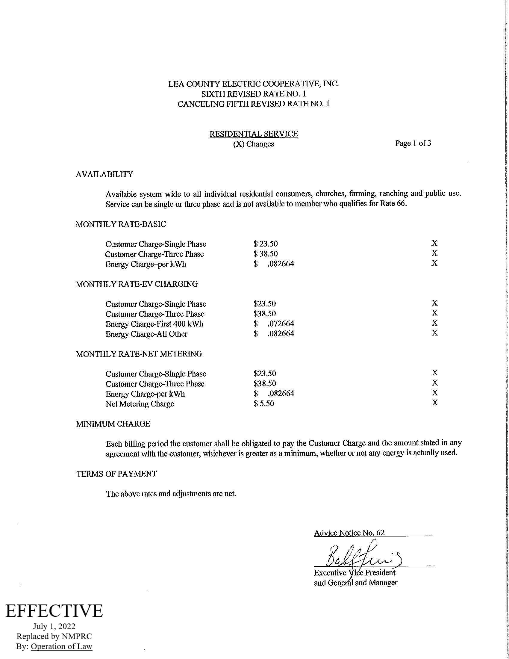 Rate Schedule Notice of Filing Expand All Rate 1 - RESIDENTIAL SERVICE https://lcecnet.com/sites/default/files/2024%20Rates/Rate%201.pdf Rate 8 - COMMERCIAL EV CHARGING RATE https://lcecnet.com/sites/default/files/2024%20Rates/Rate%208.pdf Rate 10 - SMALL COMMERCIAL SERVICE https://lcecnet.com/sites/default/files/2024%20Rates/Rate%2010.pdf Rate 11 - LARGE COMMERCIAL SERVICE https://lcecnet.com/sites/default/files/2024%20Rates/Rate%2011.pdf Rate 12 - SMALL IRRIGATION SERVICE https://lcecnet.com/sites/default/files/2024%20Rates/Rate%2012.pdf Rate 13 - SMALL IRRIGATION SERVICE https://lcecnet.com/sites/default/files/2024%20Rates/Rate%2013.pdf Rate 14 - LARGE IRRIGATION SERVICE https://lcecnet.com/sites/default/files/2024%20Rates/Rate%2014.pdf Rate 15 -MUNICIPAL AND SCHOOL SERVICE https://lcecnet.com/sites/default/files/2024%20Rates/Rate%2015.pdf Rate 21 -SECONDARY SERVICE 500 KW TO 2000 KW https://lcecnet.com/sites/default/files/2024%20Rates/Rate%2021.pdf Rate 23 - PRIMARY SERVICE UNDER 500 KW https://lcecnet.com/sites/default/files/2024%20Rates/Rate%2023.pdf Rate 25 - PRIMARY SERVICE OVER 2000 KW https://lcecnet.com/sites/default/files/2024%20Rates/Rate%2025.pdf Rate 28 - PETROLEUM SERVICE https://lcecnet.com/sites/default/files/2024%20Rates/Rate%2028.pdf Rate 32 - SECONDARY SERVICE UNDER 500 KW https://lcecnet.com/sites/default/files/2024%20Rates/Rate%2032.pdf Rate 33 - SECONDARY SERVICE OVER 2000 KW https://lcecnet.com/sites/default/files/2024%20Rates/Rate%2033.pdf Rate 34 - PRIMARY SERVICE FROM 500 kW TO 2000 kW https://lcecnet.com/sites/default/files/2024%20Rates/Rate%2034.pdf Rate 40 - SPECIAL SERVICES AND CHARGES https://lcecnet.com/sites/default/files/2024%20Rates/Rate%2040.pdf Rate 66 - LARGE POWER-GROW FACILITIES https://lcecnet.com/sites/default/files/2024%20Rates/Rate%2066.pdf Rate 68 - STC-22 SERVICE https://lcecnet.com/sites/default/files/2024%20Rates/Rate%2068.pdf ENERGY DEMAND CALCULATOR Appliances - Demand Air Conditioner - 4.0 kW Clothes Dryer - 5.60 kW Coffee Maker - 1.025 kW Dishwasher - 1.20 kW Electric Oven - 3.40 kW Electric Range - 1.50 kW EV Charger (Level 1) - 2.30 kW Appliances - Demand Electric Water Heater - 4.50 kW Hair Dryer - 1.50 kW Heat Pump - 3.587 kW Iron - 1.100 kW Microwave - 1.50 kW Pool Pump - 1.763 kW Refrigerator - .700 kW Appliances - Demand Space Heater - 1.50 kW Stock Tank Heater - 1.50 kW Television - 0.33 kW Toaster Oven - 1.50 kW Vacuum - .297 kW Washing Machine - 0.21 kW Welder - 2.30 kW Select Rate - Select -Residential Single-PhaseResidential Single-Phase with EV RiderResidential Three-PhaseResidential Three-Phase with EV Rider Total Demand 0 kW kWh for Month Customer Charge $ Customer Charge $ Residential Single-Phase Cost Account Activity Amount Electric Service kWh x $0.085371: $0.00 + Customer Charge: $23.50 + Demand Charge (0 x $0.50): $0.00 Total Charges: $23.50 Residential Single-Phase with EV Rider Cost Account Activity Amount Electric Service kWh x $0.060371:$0.00 + Customer Charge: $23.50 + Demand Charge (0 x $0.50): $0.00 Total Charges: $23.50 Residential Three-Phase Cost Account Activity Amount Electric Service kWh x $0.085371: $0.00 + Customer Charge: $38.50 + Demand Charge (0 x $0.50): $0.00 Total Charges: $38.50 Residential Three-Phase with EV Rider Cost Account Activity Amount Electric Service kWh x $0.060371:$0.00 + Customer Charge: $38.50 + Demand Charge (0 x $0.50): $0.00 Total Charges: $38.50